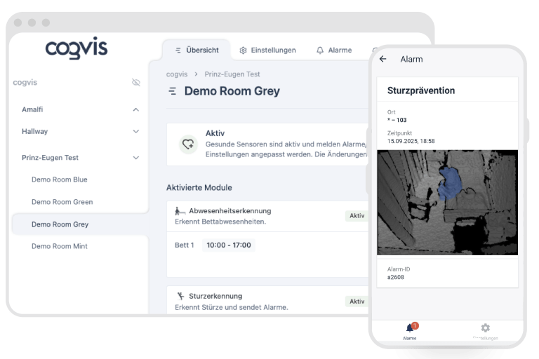 True care knows no standard solutions. Every person is unique – and deserves unique care. This is exactly where the cogvis platform comes in: each sensor can be configured precisely according to your requirements – room by room, resident by resident.
